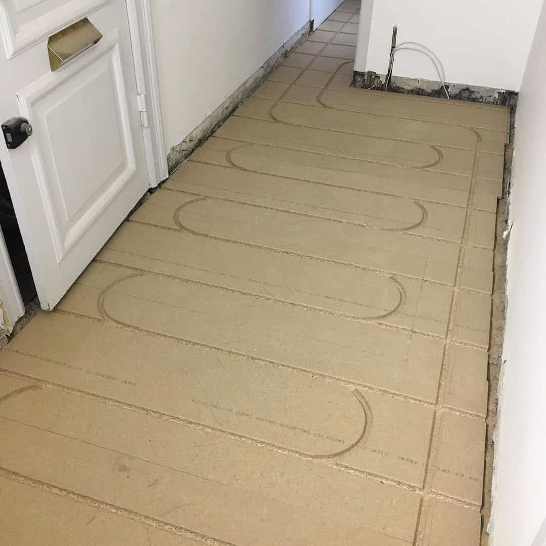 I vandbaseret gulvvarme cirkulerer varmt vand i et system af rør, der enten er støbt ind i betongulvet eller lagt i spor i isoleringsplader under gulvbelægningen.